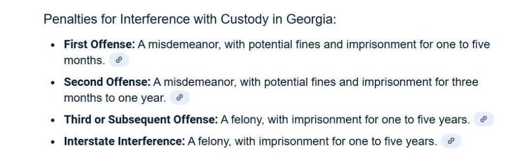 So, I began to research. Here’s what I found for the state of Georgia (which was no surprisurprise, as this is how it is in most states, and it’s something I’ve helped fight against in the past). Parental Abduction falls under Custodial Interference. This bucket encompasses the extreme of parental abduction all the way down to a parent being an hour late returning a child from visitation. Because, yeah…that’s TOTALLY the same. Additionally, that bucket is so all encompassing, you can abduct your child twice without it being a felony, as long as you don’t cross state lines.